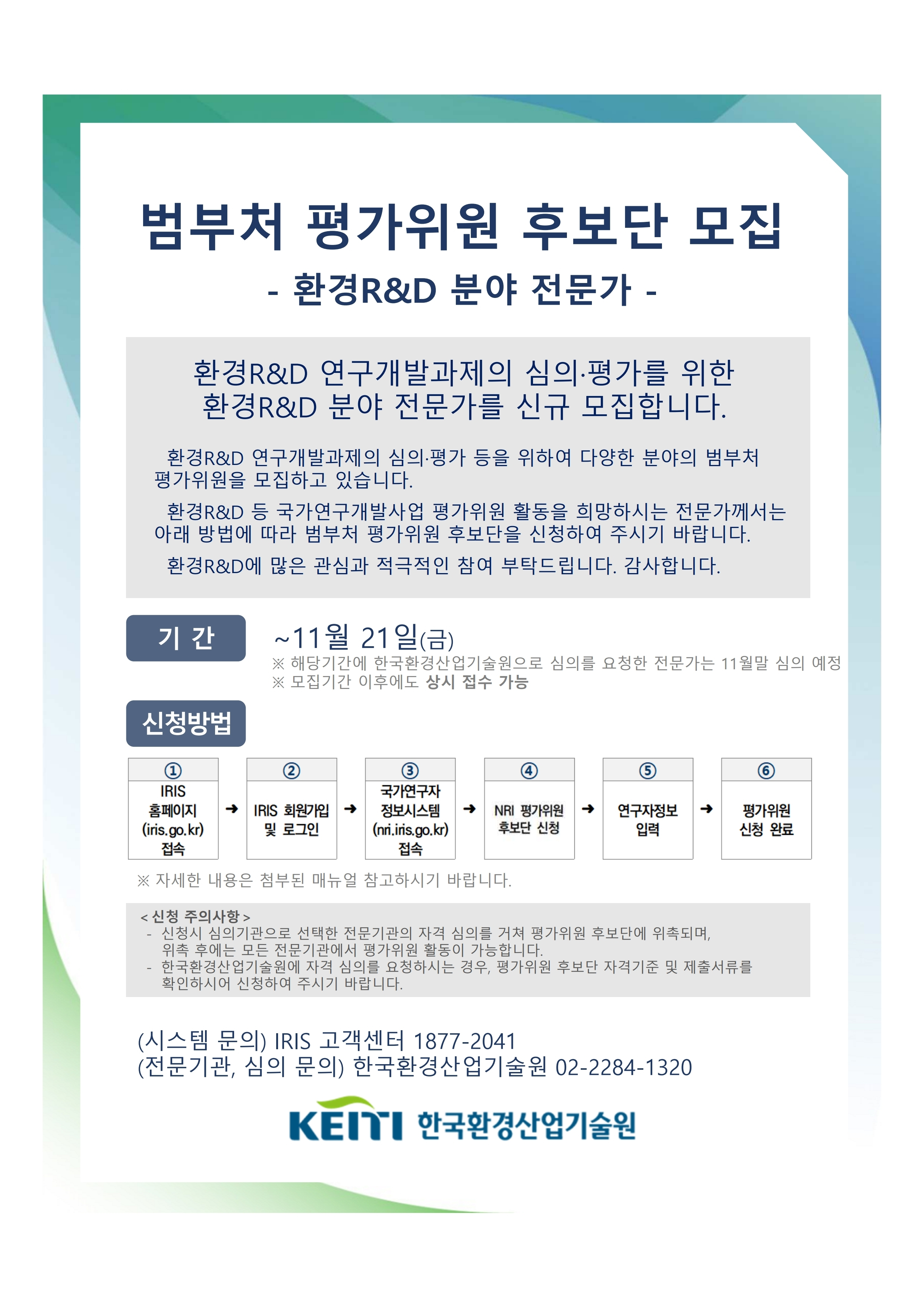 [한국환경산업기술원]환경분야 범부처 평가위원 후보단 신규 신청 안내