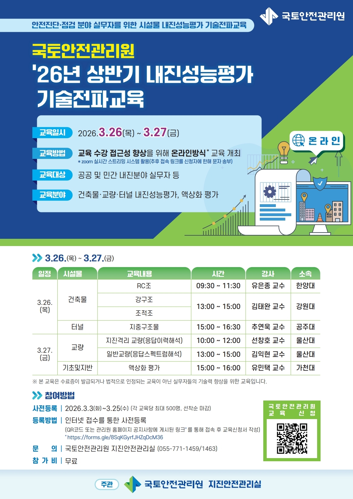 [국토안전관리원] 26년 상반기 내진성능평가 기술전파교육(온라인) 신청 안내