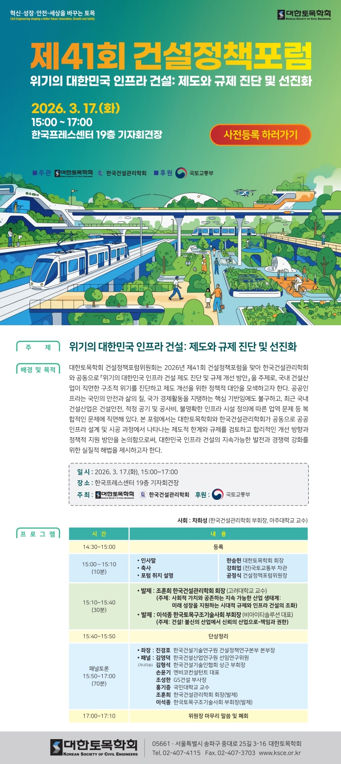 [대한토목학회] 토목의 날 기념 사전행사 - 제41회 건설정책포럼 사전등록 안내