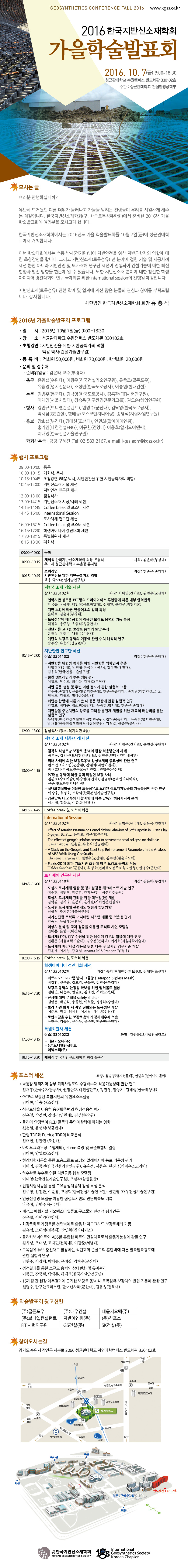 [한국지반신소재학회] 2016 가을학술발표회 개최 안내